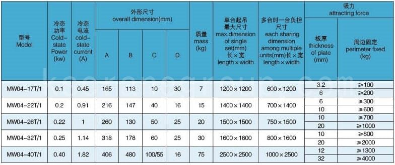 Kuinua sumaku-umeme kwa kuinua sahani za chuma Mfululizo wa MW